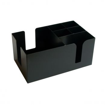 Bar-Organizer/Aufbewahrung in Schwarz. Passend für jede Bar zur Aufbewahrung von Servietten, Strohhalmen etc. Kann in der Spülmaschine gewaschen werden. Material – pulverbeschichteter Stahl. Größe 25,5 x 14,5 cm, Höhe 11,5 cm.