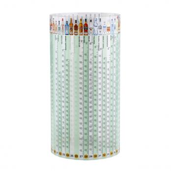 Messzylinder transparent – ein ideales Werkzeug für die Inventur. Informativer Anwendungszylinder zum Abmessen von Alkohol in einer Flasche. Der Messzylinder für Alkohol ist mit einem Aufdruck aus Skalen und Flaschen versehen. Durchsichtiger, wasser- und abriebfester Kunststoffmessstab. Enthält 45 der meistverkauften Alkoholarten.
