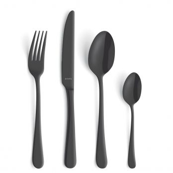 Esslöffel aus Edelstahl 18/0 mit schwarzem Finish, der dem Besteck ein modernes, luxuriöses Aussehen verleiht. PVD-Oberflächenbehandlung – das Besteck verfügt über eine dünne Titanbeschichtung, die für lebendige Farben sorgt.