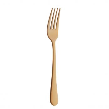 Speisegabel aus Edelstahl 18/0 mit Goldfinish, das dem Besteck ein modernes, luxuriöses Aussehen verleiht. PVD-Oberflächenbehandlung – das Besteck verfügt über eine dünne Titanbeschichtung, die für lebendige Farben sorgt.