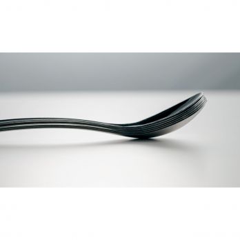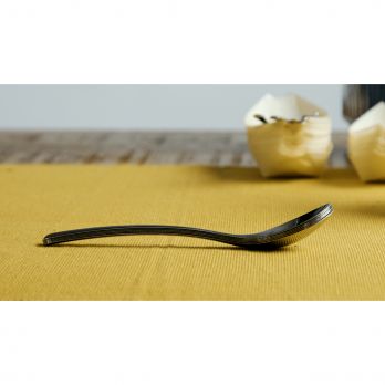 Kleiner Löffel aus rostfreiem Stahl der Stärke 0,6 mm, geeignet als Ersatz für Einwegbestecke aus Kunststoff - voll abbaubares Material, dank der Geschirrspülbeständigkeit auch wiederholt verwendbar, geliefert in Packungen zu je 12 Stück.