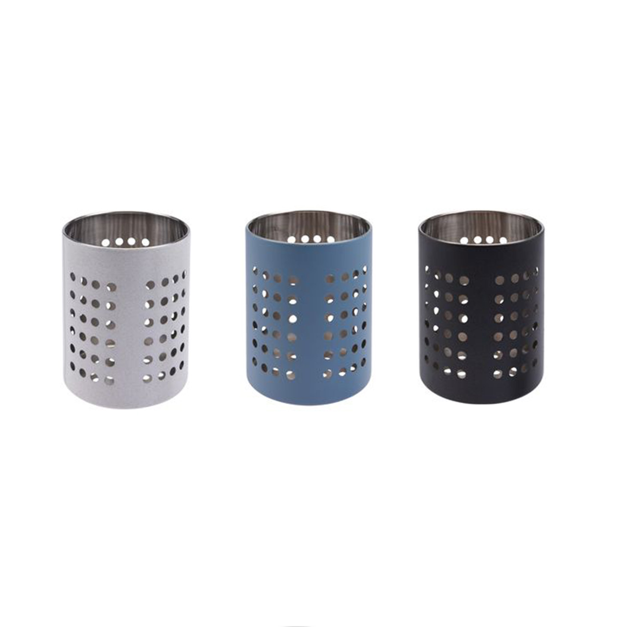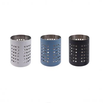 Besteckständer aus Metall in verschiedenen Farben. Durchmesser 10,5 cm, Höhe 13 cm.