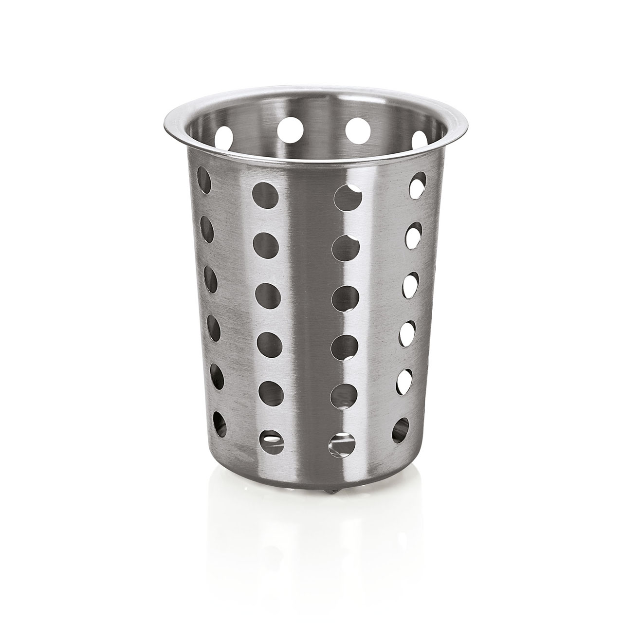 Besteckbehälter/-korb aus Chrom-Nickel-Edelstahl. Perforiertes Design, separat in der Spülmaschine oder im Edelstahlständer mit 4 Fächern verwendbar.