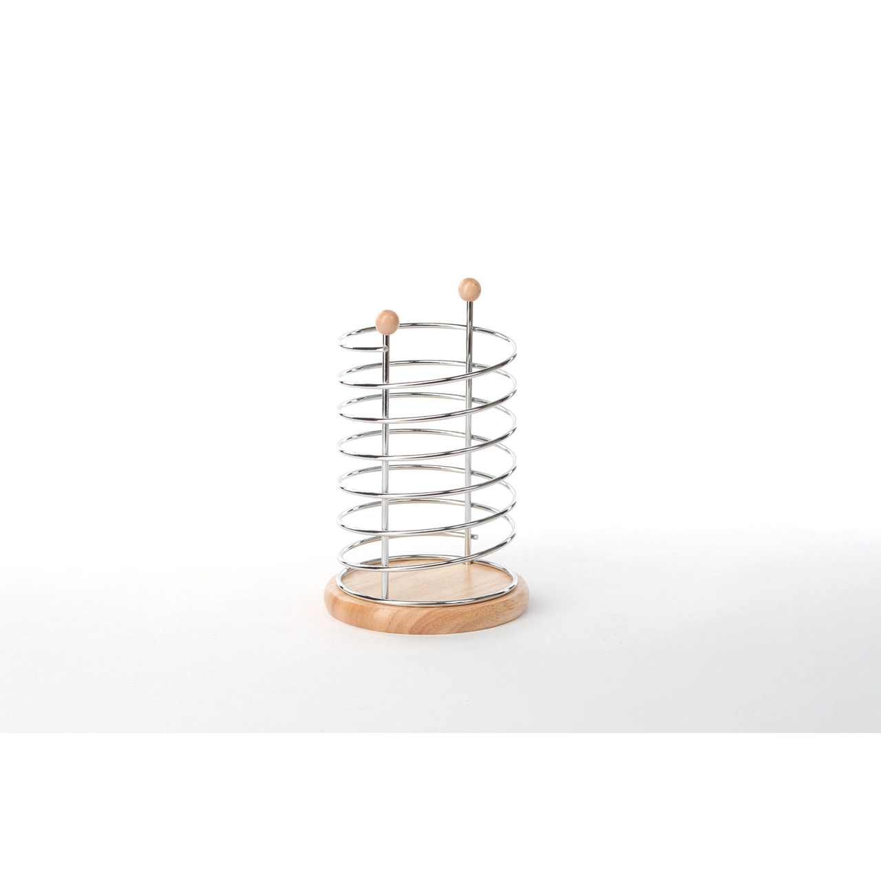 Besteckkorb, Servietten aus verchromtem Stahl mit Holzboden.