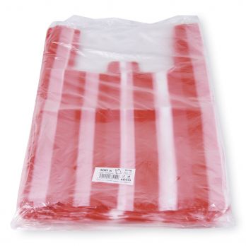 Beutel (HDPE) gestreift 30+14 x 50 cm. Tragfähigkeit 10 kg.