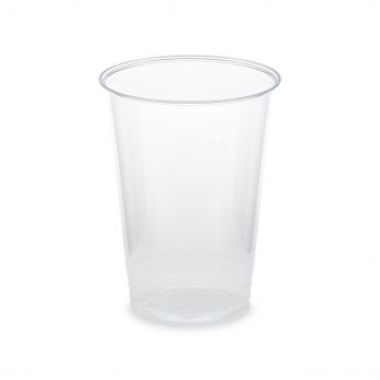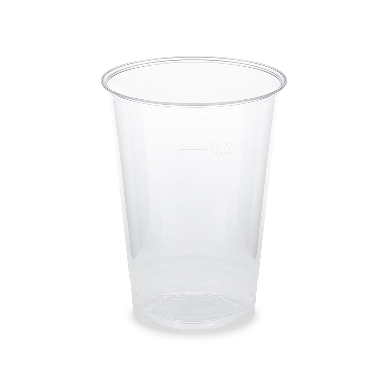 Becher (PLA) transparent mit einem Durchmesser von 84 mm. Volumen 0,3 l.