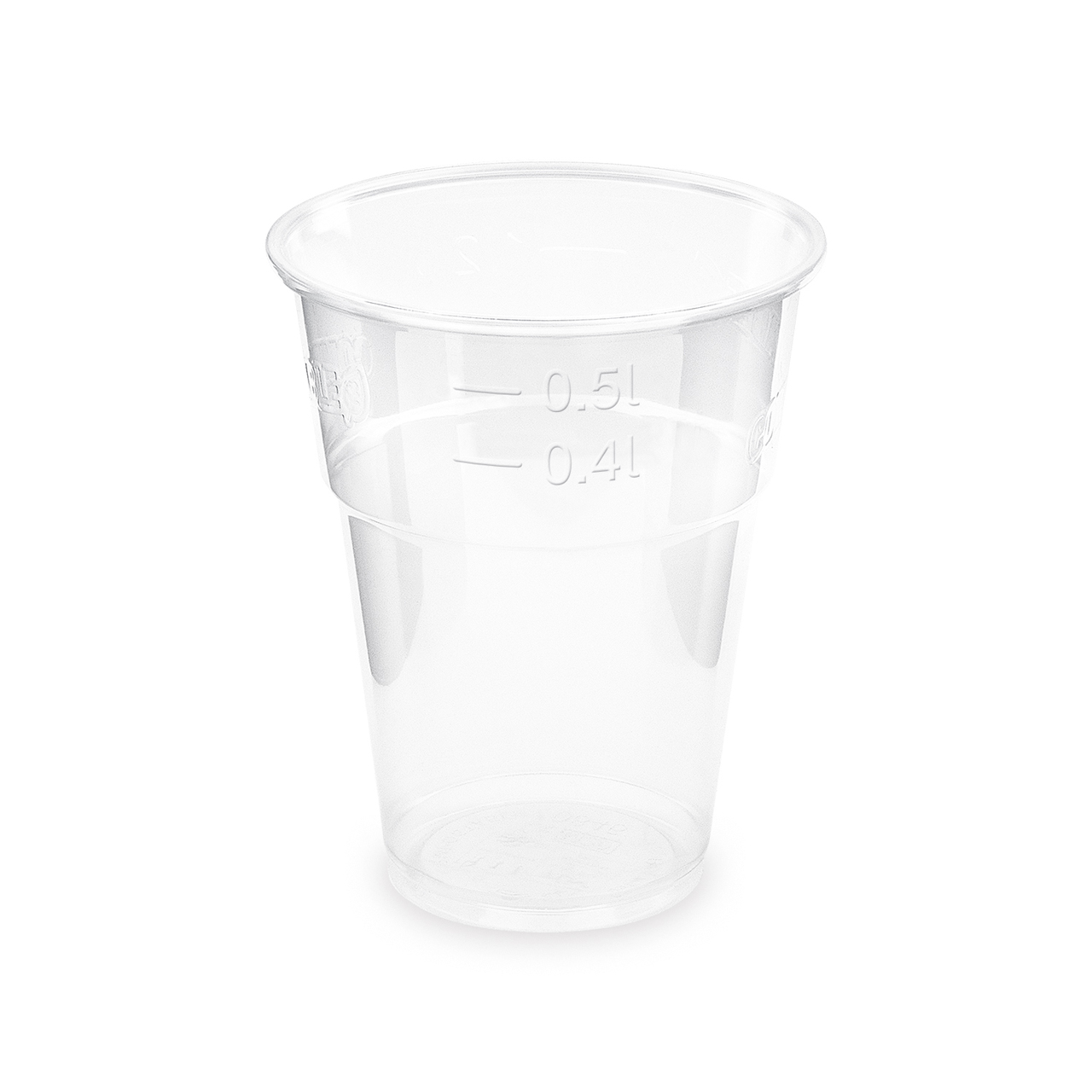 Becher (PLA) transparent mit einem Durchmesser von 1,02 mm. Volumen 0,5 l.
