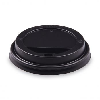 Konvexer Deckel schwarz für Pappbecher Durchmesser 90 mm. Die Tassen sind in der Farbe Weiß Nr. 100025794, in der Farbe Braun Nr. 100030987 oder mit Aufdruck Nr. 100030164 erhältlich.