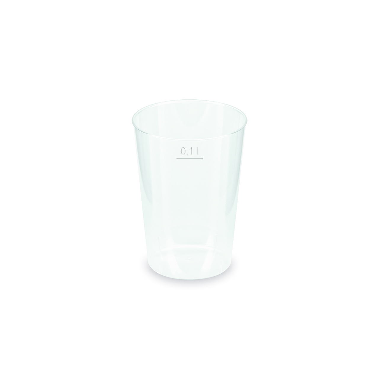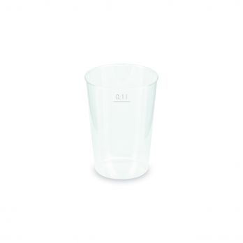 Mehrwegbecher (PP) mit einem Volumen von 0,1 l. Durchmesser: 55 mm, Bodendurchmesser: 41 mm.