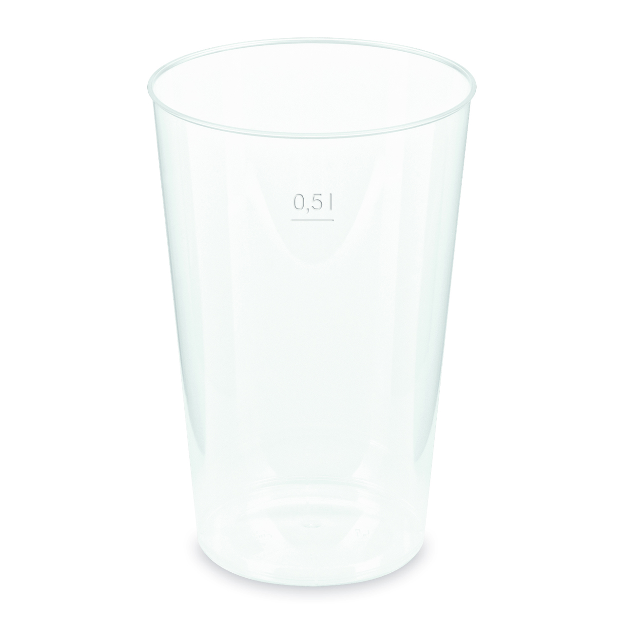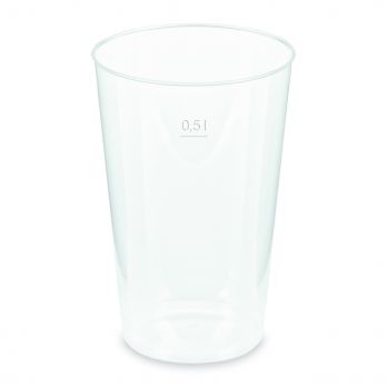 Mehrwegbecher (PP) mit einem Volumen von 0,5 l. Durchmesser: 91 mm.