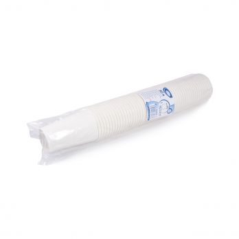 Pappbecher weiß ML mit einem Volumen von 0,33 l, Durchmesser 80 mm. Eine passende Kappe finden Sie unter der Nummer 100004192 in Schwarz und 100017879 in Weiß. Enthält Kunststoff.