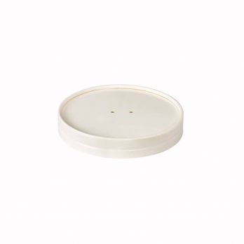 Deckel aus einer Mischung aus PAP/PE-Material für Bagasseschalen Nr. 100030593 mit einem Durchmesser von 14 cm. Maximale Temperatur + 70 Grad C.