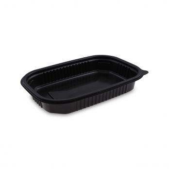 Menüschale schwarz für Mikrowelle 750 ml, Größe M: 22 x 15 x 3,5 cm (PP). Deckel unter der Nummer 100026295.