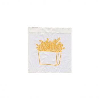 Papiertüte für Pommes mit Aufdruck. Größe 10+5 x 11 cm.