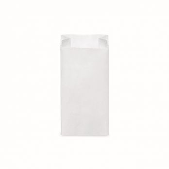 Papiertüte (FSC Mix) mit seitlicher Aufbewahrung weiß. Größe 12+5 cm, Höhe 24 cm. Tragfähigkeit 1 kg.