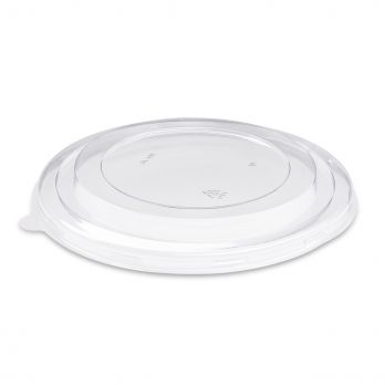Deckel (rPET) transparent für eine Papierschale mit einem Durchmesser von 18,5 cm. Passende Schüsseln 100031562 und 100031563.