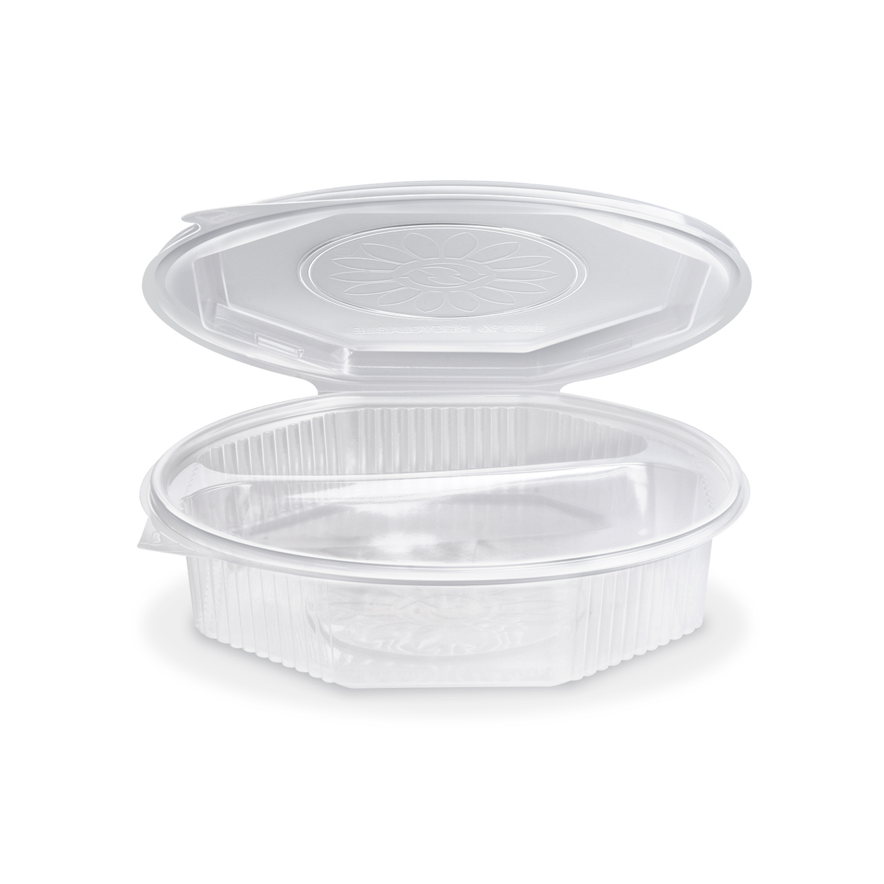 Menüschale (PP) achteckig transparent mit Deckel 2-teilig. Spezifikationen: 21,5 x 22 x 5,7 cm. Volumen 600 + 405 ml.