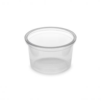 Dressingschüssel transparent 30 ml (PP), Durchmesser oben 4,5 cm, Durchmesser unten 4 cm, Schüsselhöhe 2,5 cm. Passende Deckel Nr. 100023192.