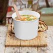 Papierschale rund 500 ml (PAP/PE). Durchmesser 11,5 cm, Höhe 7,8 cm. Eine passende Deckel finden Sie unter der Nummer 100026343.