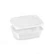 Transparente Schüssel aus Kunststoff (PP) mit integriertem Deckel, 125 ml. Temperaturbereich 0 °C bis + 100 °C. Für die Mikrowelle geeignet. Größe: 11,4 x 8,9 cm, Höhe 2,7 cm.