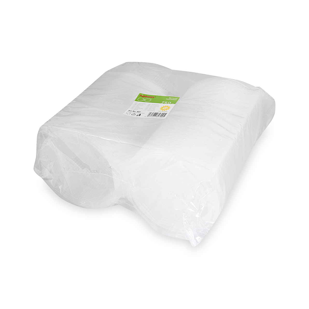 Achteckige Schüssel mit einem Volumen von 750 ml mit Deckel (PP). Größe: 16,7 x 16,3 cm, Höhe 7,3 cm.