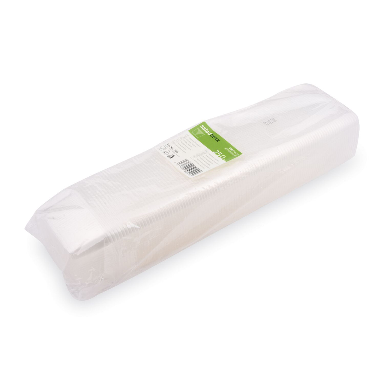 Rechteckige transparente Schüssel 250 ml (PP). Spezifikationen: 10,8 x 8 x 4,8 cm. Den Deckel finden Sie unter der Nummer 100017613.