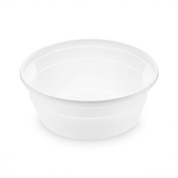 Weiße Suppenschüssel mit einem Fassungsvermögen von 350 ml (PP), geeignet für die Mikrowelle. Den Deckel finden Sie unter der Nummer 100026336.