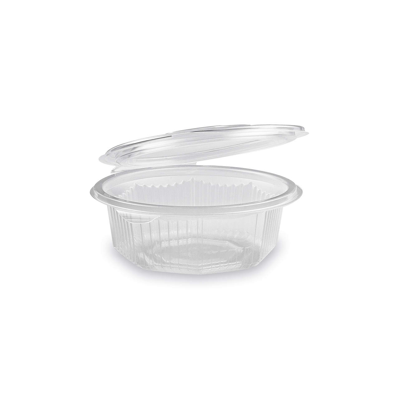 Achteckige Schüssel mit einem Volumen von 375 ml mit Deckel (PP). Größe: 14,5 x 13,8 cm, Höhe 5 cm.
