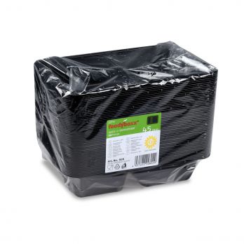 Menüschale (PP) extra stark 2-teilig schwarz 22,7 x 17,8 x 4,9 cm. Passend zur Siegelmaschine 100030438. Siegelfolien finden Sie unter der Nummer 100030439.