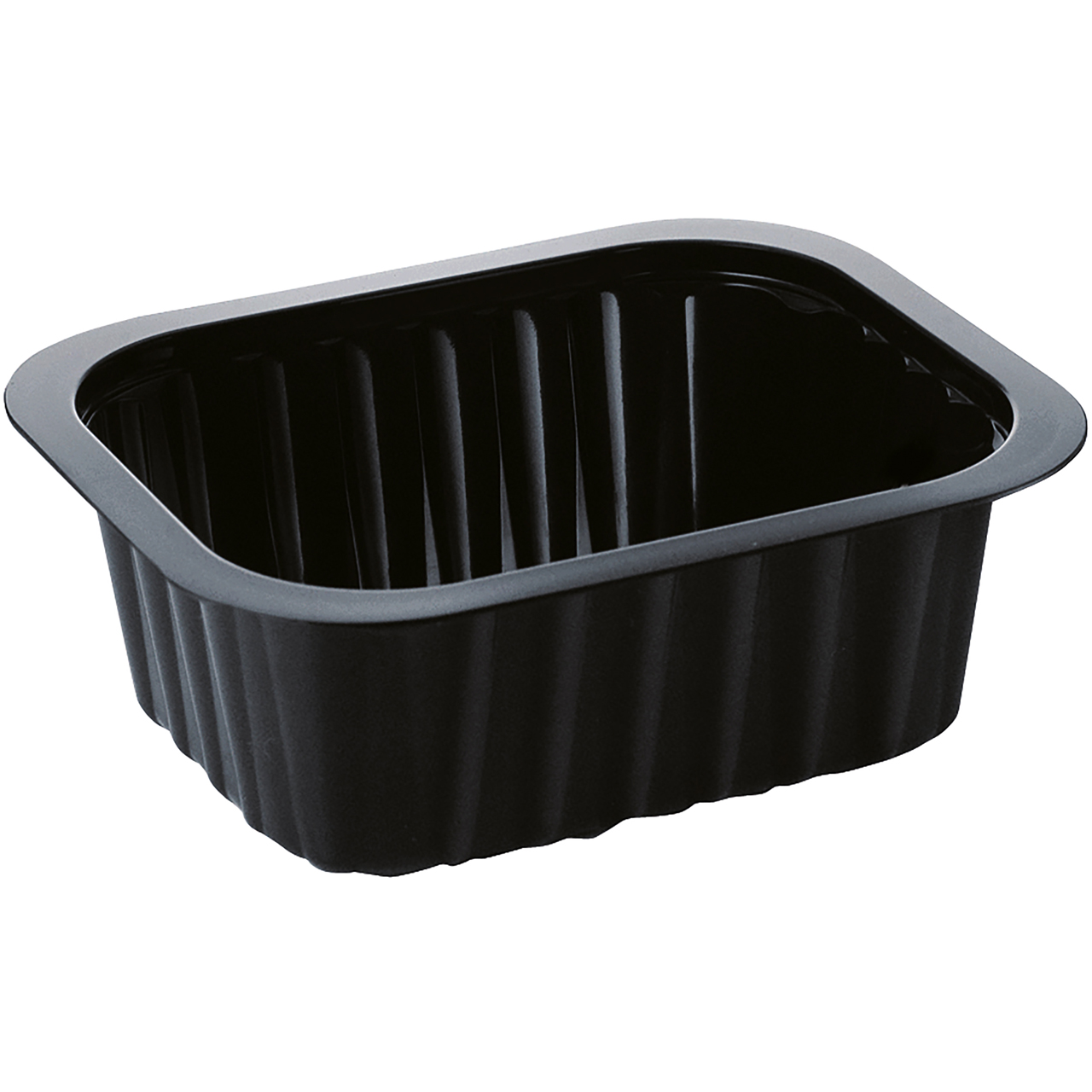 Schüssel 1-teilig aus schwarzem PP mit einem Volumen von 470 ml. Größe 13,8 x 11, cm, Höhe 5,3 cm. Anwendungsbereich -20°C bis +120°C. Passend für Verpackungsmaschine DF10 (Nummer 100011682), Kartusche Nr. 100026141. Geeignet für Suppen und Beilagen.
