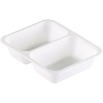 Cater Line 2-teilige Schüssel mit einem Volumen von 645 + 540 ml weiß. Größe 22,7 x 17,8, Höhe 5 cm. Anwendungsbereich -20°C bis +120°C. Geeignet für die Verpackungsmaschine DF10 (Nummer 100011682), Kartusche Nr. 100022685. Die Siegelfolie finden Sie unter der Nummer 100016902.