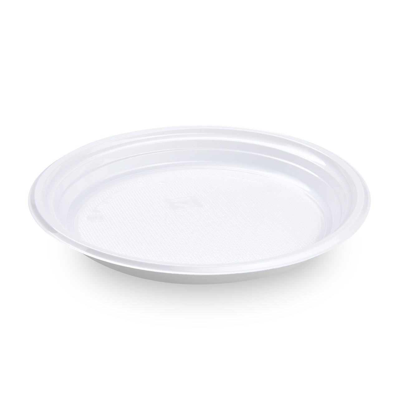 Teller (PP) ECONOMY Mehrweg weiß mit einem Durchmesser von 22 cm [100 Stück]. Den Deckel finden Sie unter der Nummer 100031569.