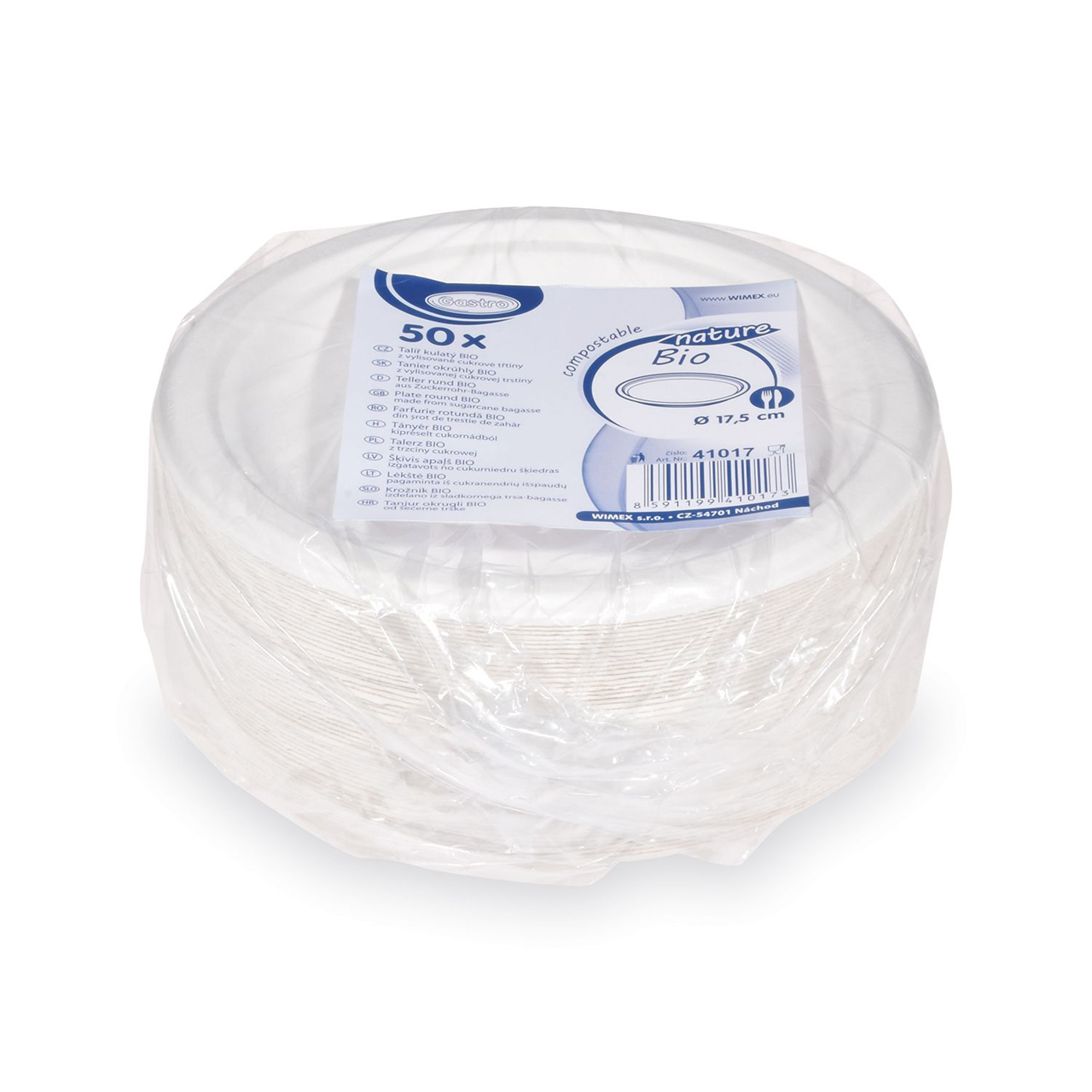 Spezifikation: Durchmesser: 17,5 cm Runder Teller aus Bio-Zuckerrohr, kompostierbar, Durchmesser 17,5 cm [50 Stück].