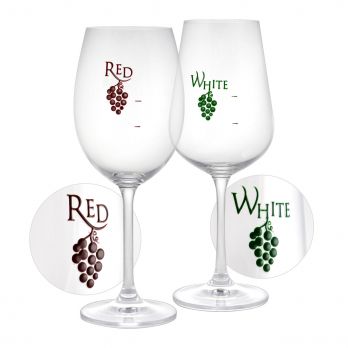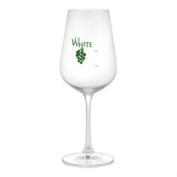 Weißweinglas mit exklusivem Reliefdekor „Weißwein“ mit zwei Orientierungslinien mit einem Volumen von 0,2 und 0,1 l.