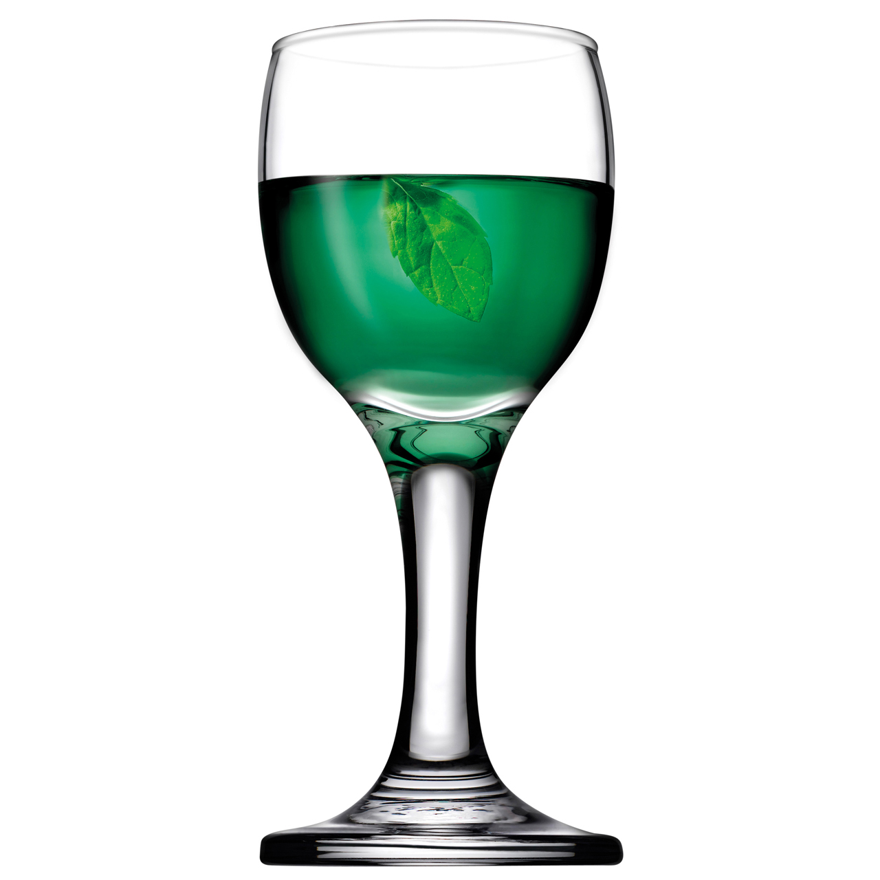 Ein für Liköre geeignetes Stielglas mit versiegeltem Rand.