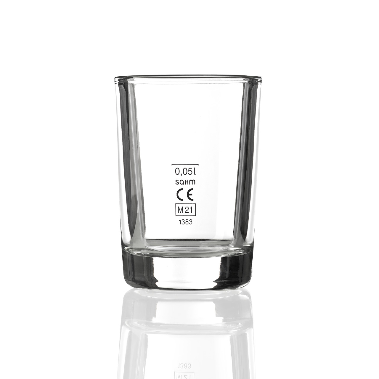 Ein für Kaffeewasser geeignetes Glas mit einer Markierung von 0,05 l (Gesamtvolumen des Glases 0,1 l). Dieser Artikel wird zum Servieren von POUSSE – CAFÉS empfohlen.