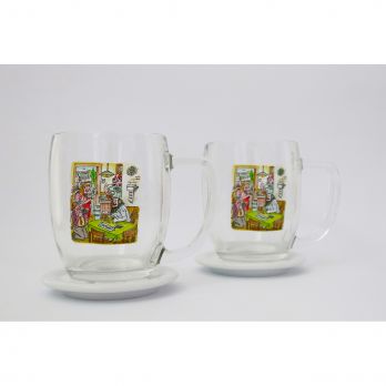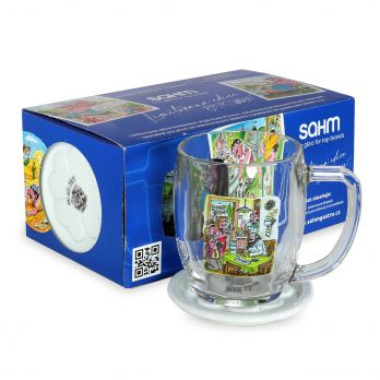 Das Set enthält 2 Stück VIENNA Seidel 0,5 l und 2 Stück Porzellan-Bieruntersetzer mit Dekor in einer Geschenkbox.