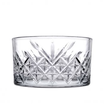 Eine Glasschale mit einem Relief von 9 cm Durchmesser aus der TIMELESS-Serie.