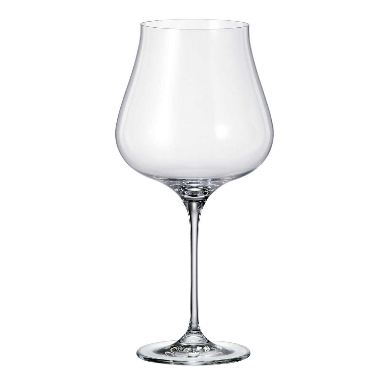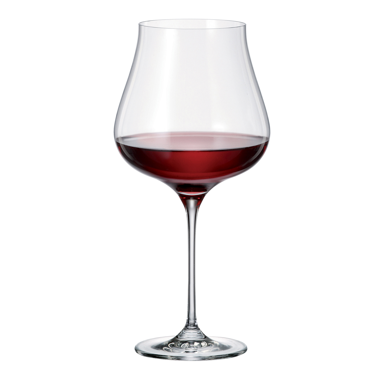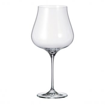 Limosa Rotweinglas, Volumen 0,74 l. Aus bleifreiem Kristall, spülmaschinenfest. Das Bohemia Crystal Limosa Glas ist ein klassisches und schönes Beispiel für ein Rotweinglas. Der Becher hat eine köstliche Tulpenform (er schließt sich nach oben), um das Aroma des Weins zu bewahren. Dieser Kelchtyp eignet sich besonders für kräftige Burgunderweine. Das Glas hat schöne klare Linien und dünne, glatte Wände, die beim Rösten einen göttlichen Klang erzeugen. Das Glas bietet einen idealen Raum für die Aroma- und Geschmacksentfaltung. Aus bleifreiem Kristall.