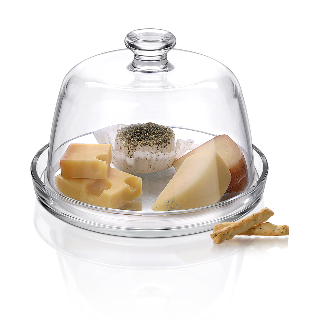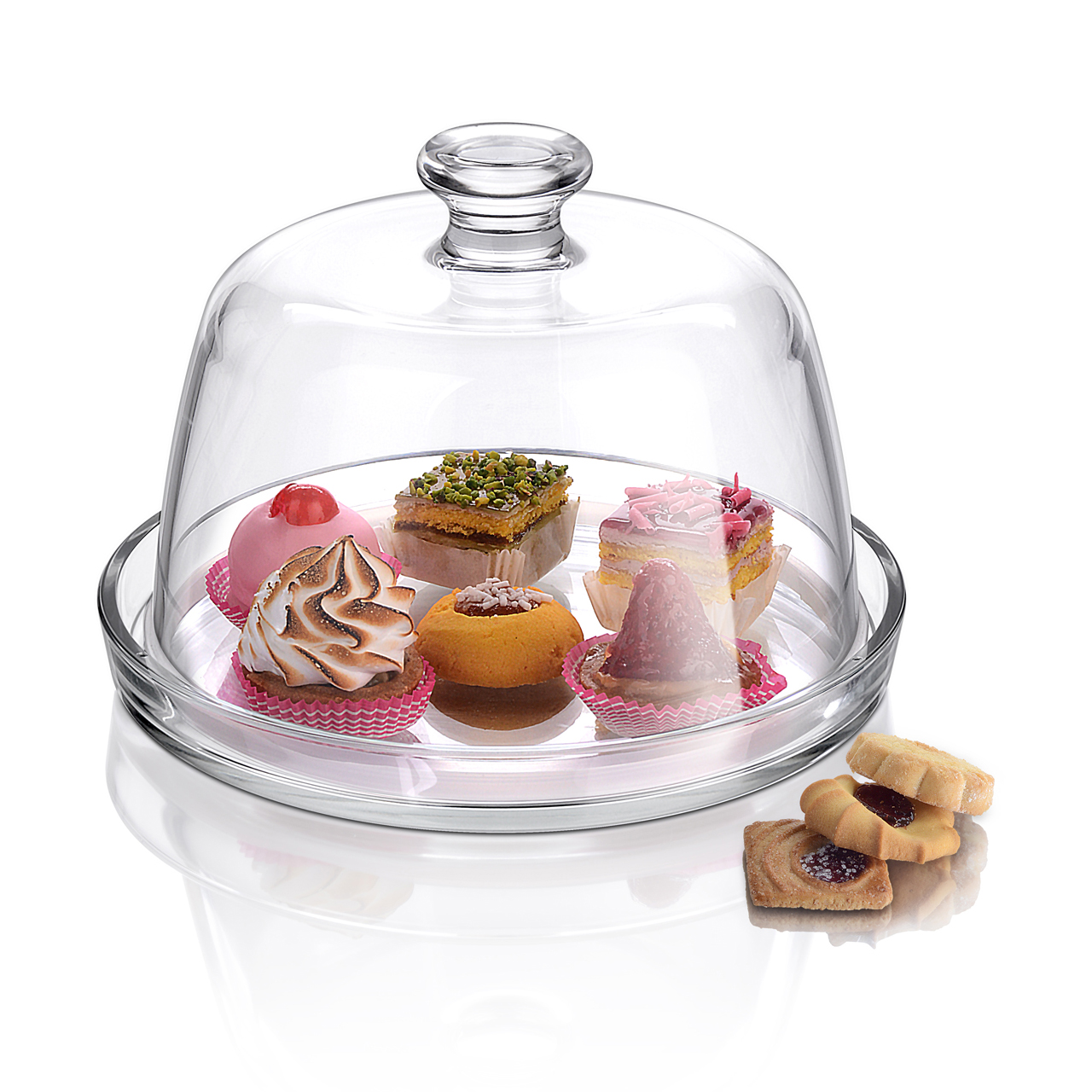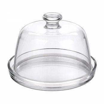 Glastablett mit Deckel für Kuchen, Desserts und Käse. Deckelhöhe 11 cm, Innendurchmesser 20 cm.