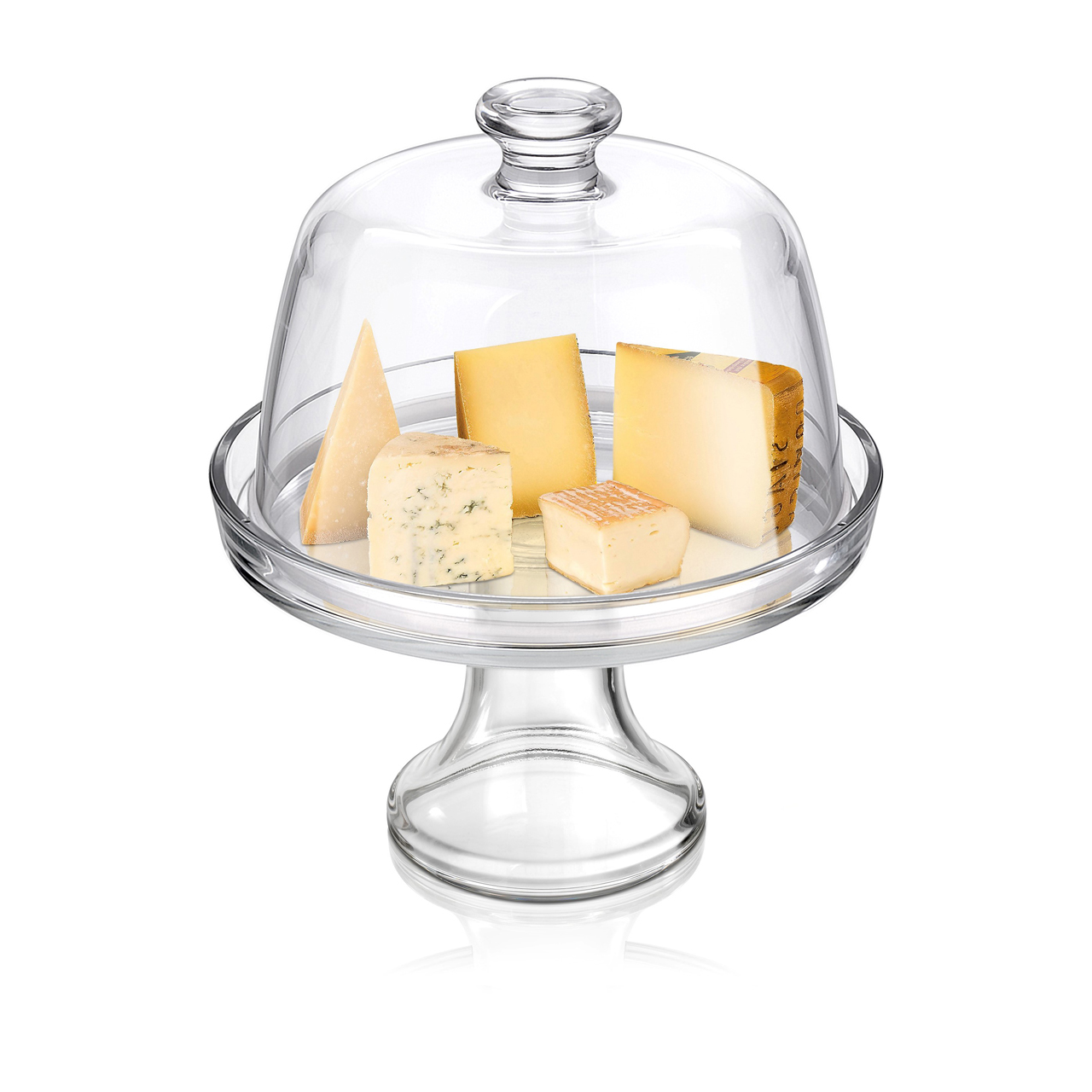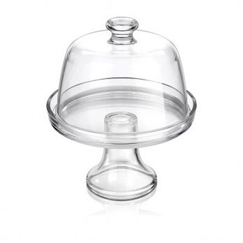 Glastablett auf dem Bein mit Deckel für Kuchen, Desserts und Käse. Deckelhöhe 11 cm, Innendurchmesser 20 cm.