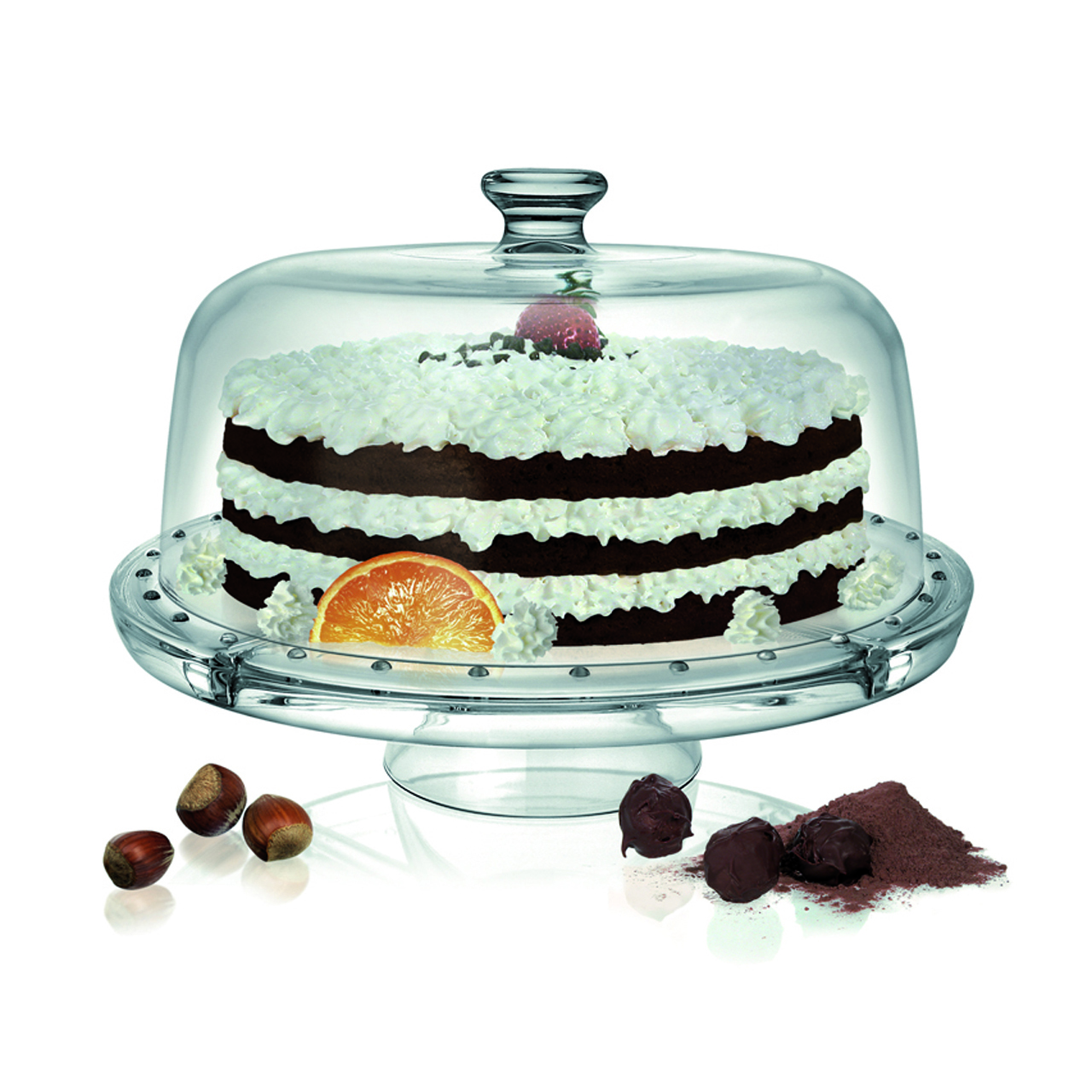 Kuchenteller aus Glas auf Bein + Deckel