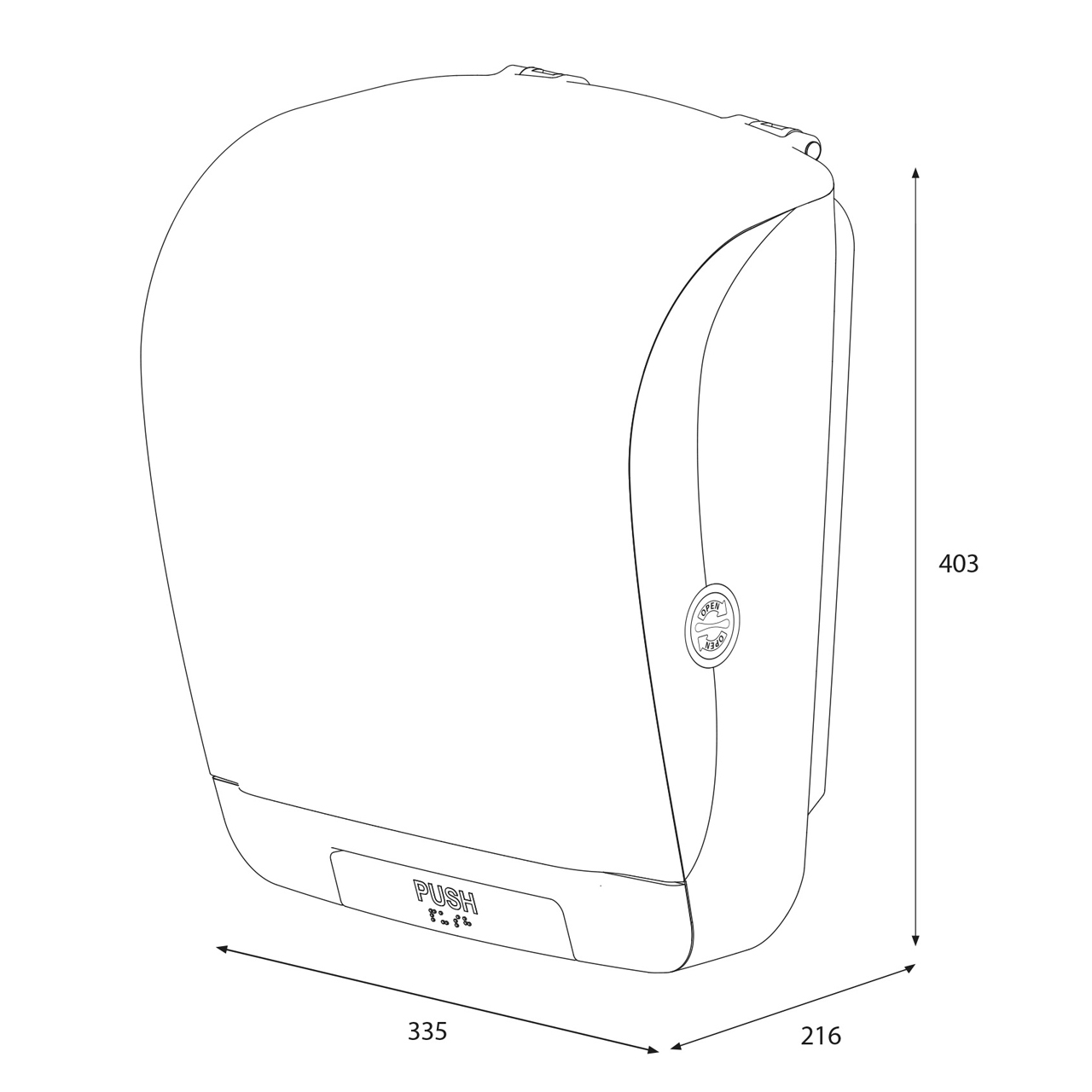 Das XL-Tablett des Katrin-Systems in Schwarz ist für stark frequentierte Bereiche (Stadien, Schwimmbäder, Messegelände usw.) gedacht. Wenn das Papier nicht sichtbar ist, gibt es einen einfach zu bedienenden PUSH-Knopf für den Papiervorschub. Abmessungen: Breite 280 mm, Höhe 400 mm, Tiefe 228 mm. Kontrollierter Verbrauch und minimaler Luftwiderstand beim Abschleppen. Dank der transparenten Seitenwände können Sie leicht erkennen, wie viel Papier noch drin ist.