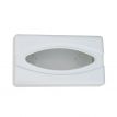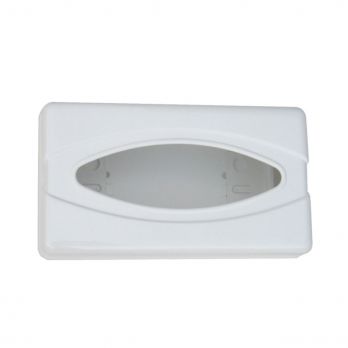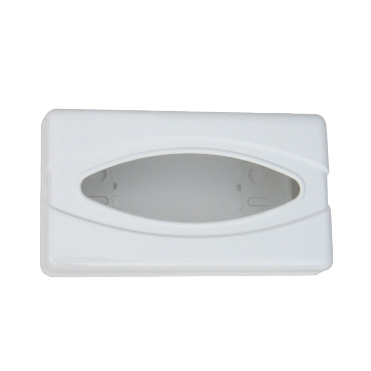 Weißer Kunststoffbehälter für Kosmetiktücher und Handschuhe. Größe 13,8 x 25,6 cm, Höhe 7,7 cm.
