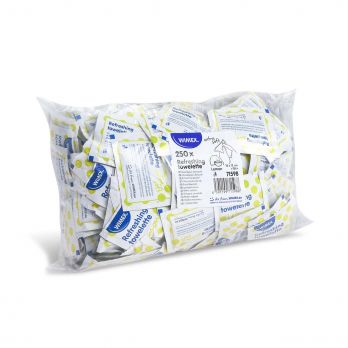 Vlhèené osvìžující ubrousky jednotlivì balené. V balení je 250 ks. Rozmìr ubrousku: 18 x 12 cm.