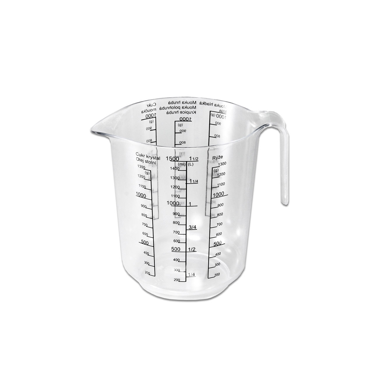 Messbecher aus Kunststoff mit 1,5 l Volumen, bedruckt, transparent