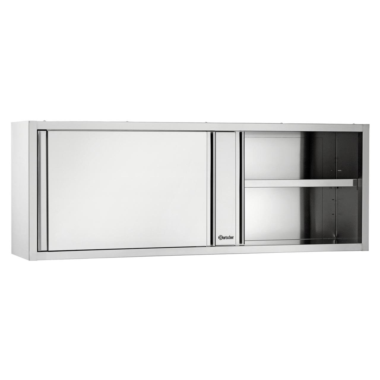 Der Bartscher Wandschrank mit Schiebetüren eignet sich für jede Profiküche. Mit höhenverstellbarem Einlegeboden und schalldämmenden Schiebetüren. Scotch-Brite-Schleiffinish. Maße (B x T x H): 580 mm Innenhöhe. Lieferung erfolgt montiert.