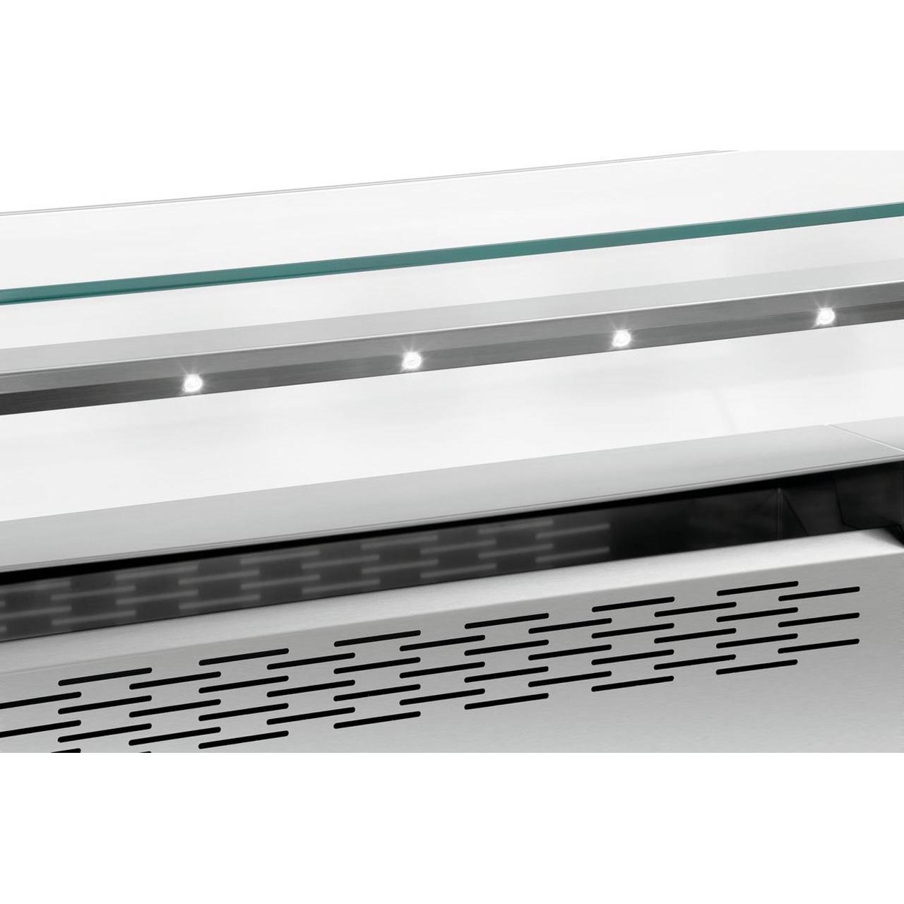 Die mobile Bartscher Frontkochstation ist für den Innen- und Außenbereich geeignet. Attraktives, robustes Design, 2 Luftfilter. Platz für bis zu 3 Tischkochgeräte nach Bedarf. Die Station verfügt über 4 integrierte GN 1/9-100 mm Behälter für Öle, Soßen oder Besteck und Kochutensilien. Die Lüfterleistung ist in 4 Stufen regulierbar. LED-Beleuchtung, komplett aus Edelstahl. Fettfilter mit Schlitzen, Zeolith-Einsätze zur Geruchsbindung. Herausnehmbare Glaslüftung. Die Station ist mit 4 Lenkrollen ausgestattet, 2 davon mit Bremsen. Ein-/Ausschalter. 5 integrierte Steckdosen: 3 x 230 V, 2 x 400 V. Abmessungen der Kochfläche: 1208 x 600 mm (B x T). Lieferung ohne Edelstahlwagen und Seitenablage. Diese sind separat erhältlich.