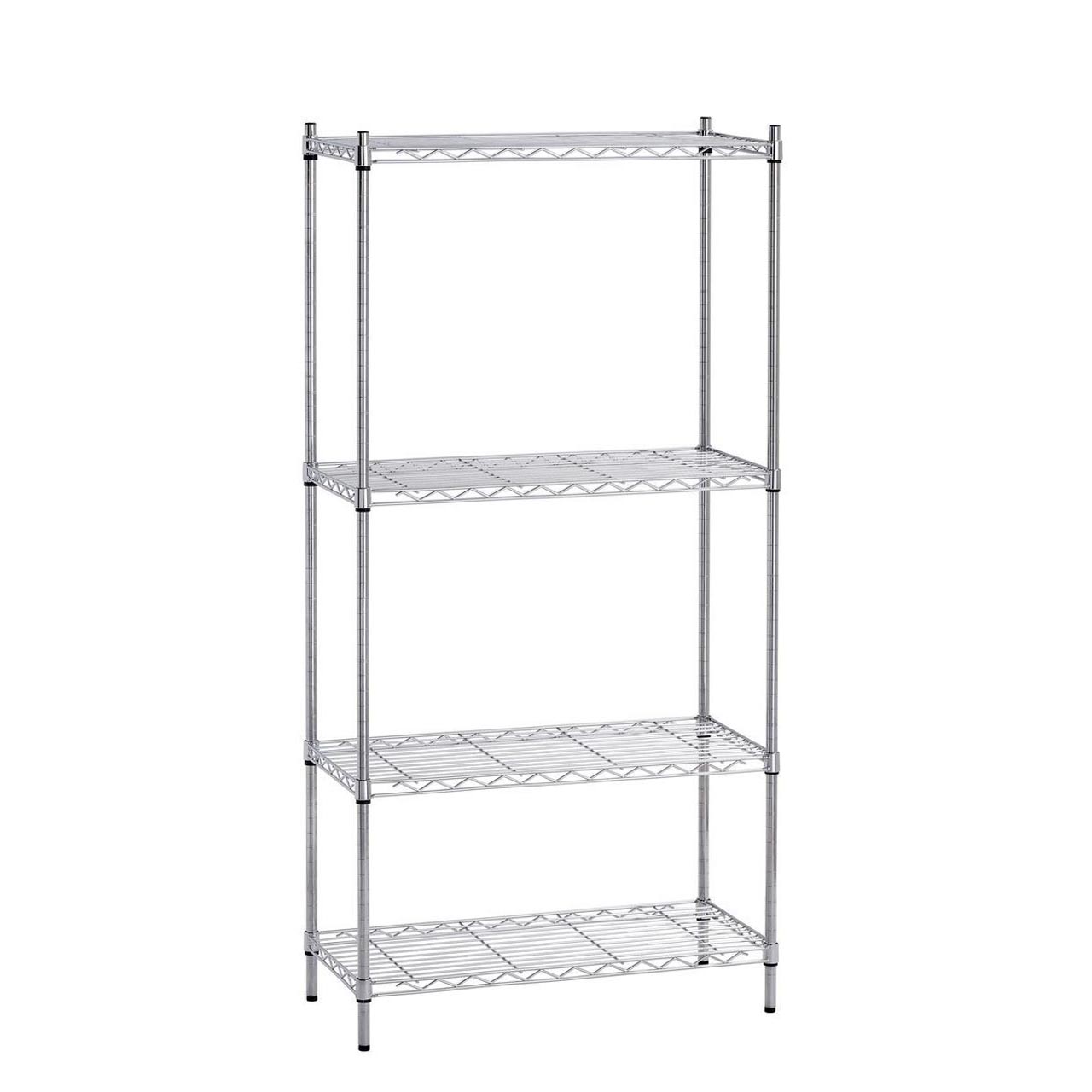 Regal aus verchromtem Stahl. 4 höhenverstellbare Regalböden. Das Montageset besteht aus 4 Regalböden und 4 Eckverbindern (Stecksystem). Einfache Montage.