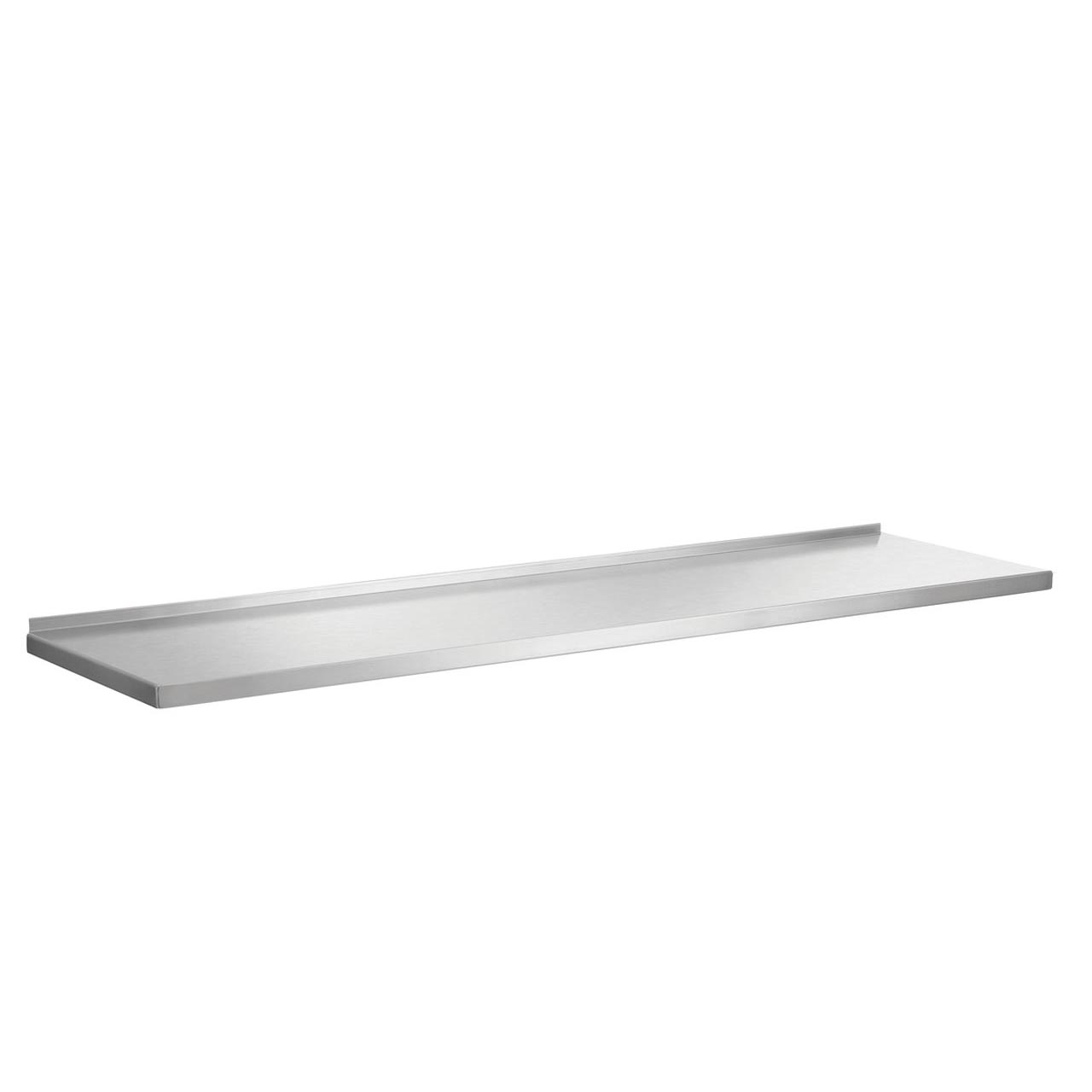Wandregal aus Edelstahl in verschiedenen Längen. Zur Montage benötigen Sie: 1 Paar verstellbare Tragschienen (530 mm lang, 600.061), 1 Paar Halterungen (600.601) und 1 oder 2 Regalböden (je nach Bedarf). Bitte separat aus unserem Angebot bestellen.